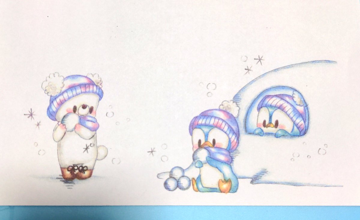 0 6 本日は制作過程を…♫暖かそうなおふたりです(*´ω`*) #イラスト #色鉛筆 22/09/21 10:07