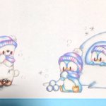 ギュッと可愛く詰め込まれちゃいました♬ ペンギンちゃん達と一緒に過ごしてみませんか♫ニット帽ともふもふのペンギンちゃんに心も一緒に暖かくなれるかも♬本日よりお迎えをお待ち申し上げております。 #ペンギン #あみぐるみ #イラスト