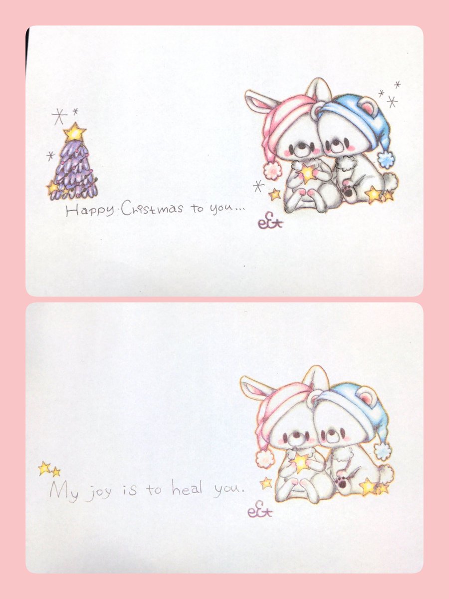 0 9 こんにちは☆本日は、こちらのイラストをご紹介♫ それぞれメッセージが違います。 1つはクリスマスシーズンに向けて【素敵なクリスマスを…♫】 もう1つは、シンプルなメッセージ【あなたの癒しが私の喜び】 #イラスト #色鉛筆 22/10/23 11:48