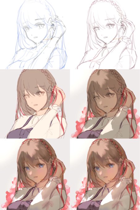 process shots for this one! i wasnt as satisfied with it as i was with the bethlehem one but i guess i still liked it. am pushing my style towards the painty side though. #wip #wipart #animeart #animeartist #artistsontwitter #Illustration #イラスト #fanart