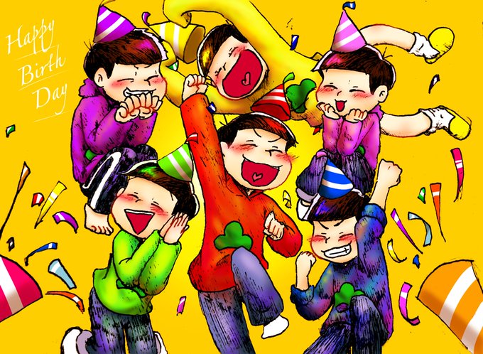 #松野家6つ子生誕祭お祝いイラスト #松野家6つ子生誕祭2021 お誕生日おめでとう!!!!!🎉🎉 いつまでも仲良く過ごしてください!!!!✨✨ 大好きーー!!!!💕💕💕