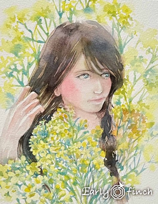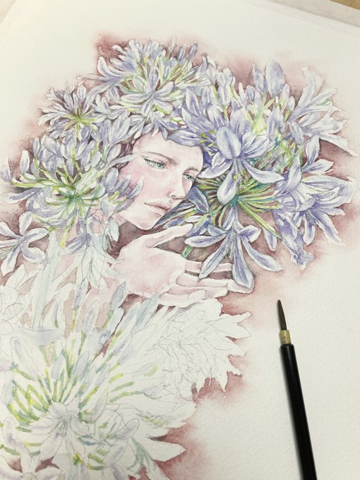 フランネルフラワーの女の子のお顔描いてるところ #水彩 #イラスト #かきかけ
