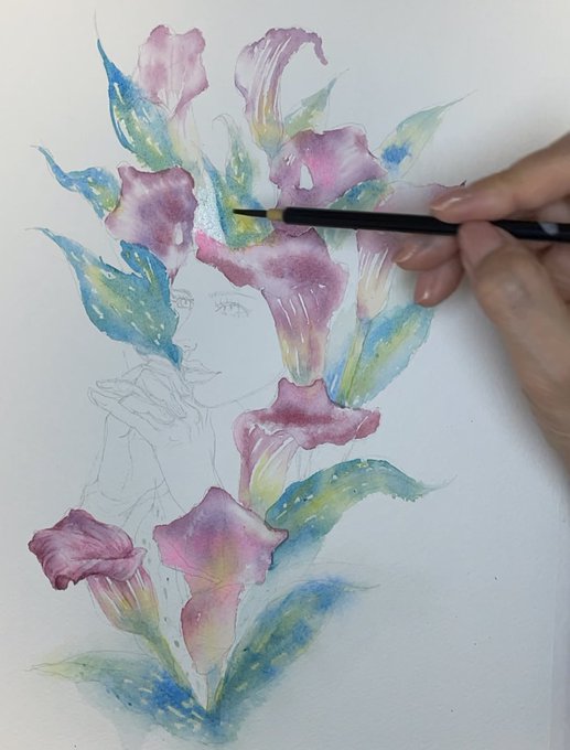 カラー描き込む前の制作過程 #水彩 #アナログ絵 #wip