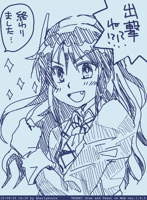 E-2-3甲、最初はLV64ノーザンプトンを使ってたけどうまく決められず、足柄さんに交代したら一発でとどめを刺してくれました。しかもCIですらない魚雷発射で…24ダメージで…(笑) #艦これ2022春梅雨イベ #tegaki_dt