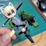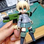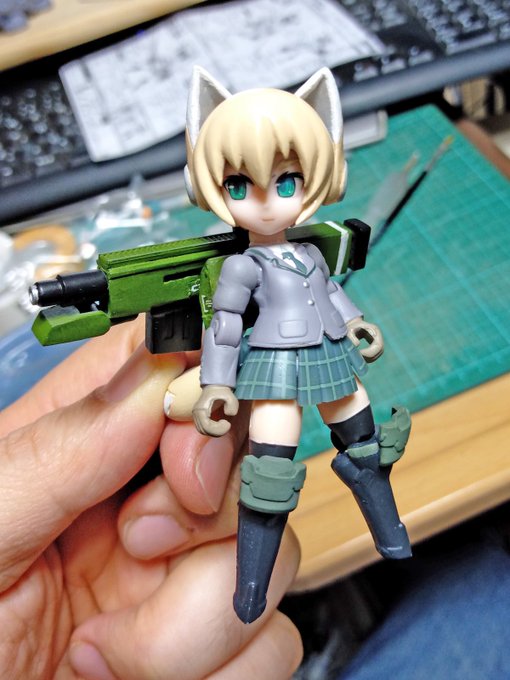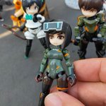 先週、某所での1コマ。 青野さん作の『菊理ナツキ』さんと維原さん作の『大屋桃子』さんは共にメリッサセプトの頭部で作った仲間です。 いやナツキさんは残りほとんどバーゼラルドですが、まぁまぁ。 #デスクトップアーミー