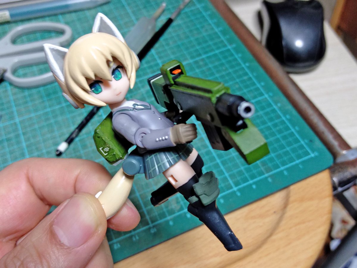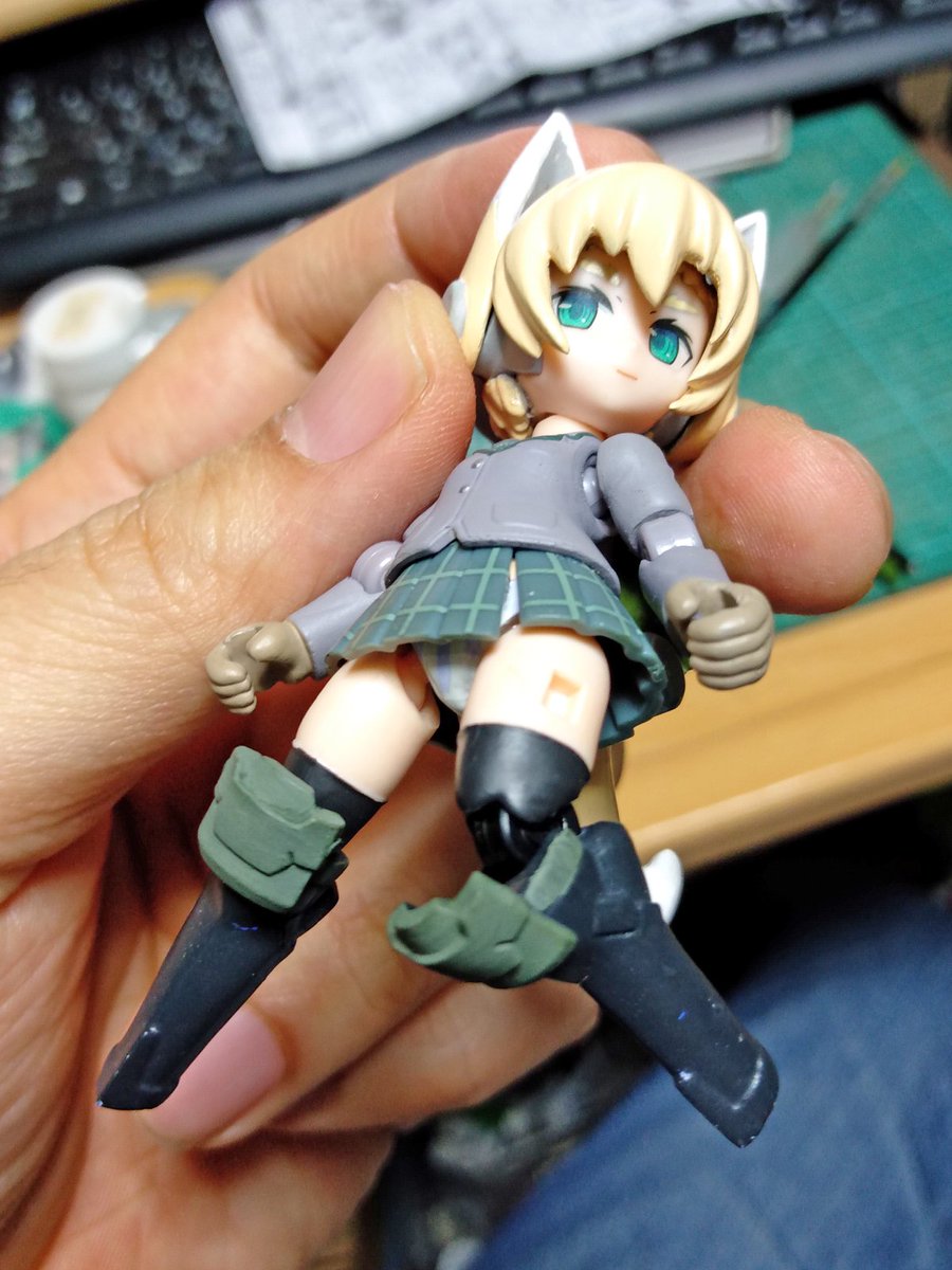 先日のAKガーデンでも頒布されていた、我道軒さんのクロム改造パーツ『シリウス』のカスタム。 実物は未だどこか保管箱のなかなんですが、完成写真が急に発見されたので貼っときます。 太腿を轟雷のに変えたことによってめちゃ好みの脚のラインになりました。 #デスクトップアーミー twitter.com/earth_bluefiel…