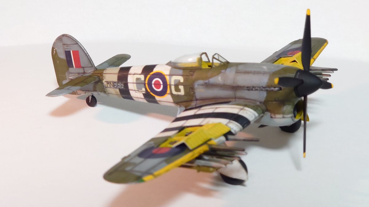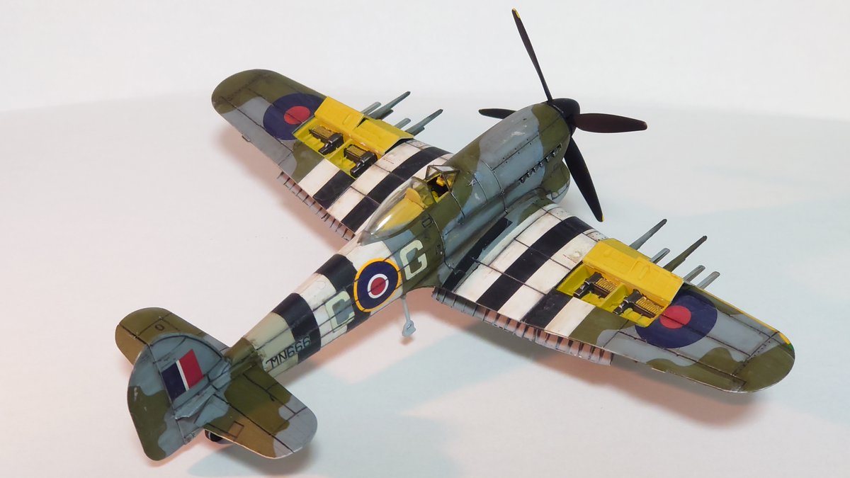 9月のマンスリープラモデル、エアフィックスのタイフーンMk.IBです! 翼内機銃まで再現されているという充実ぶりに愛を感じますね~ 計器盤はヤフーモデル、フラップはエデュアルド、水平尾翼と排気管はクイックブーストに変更しています #マンスリープラモデル #今月作ったプラモ晒そうぜ
