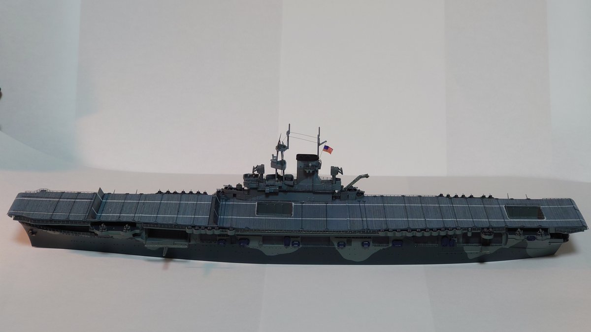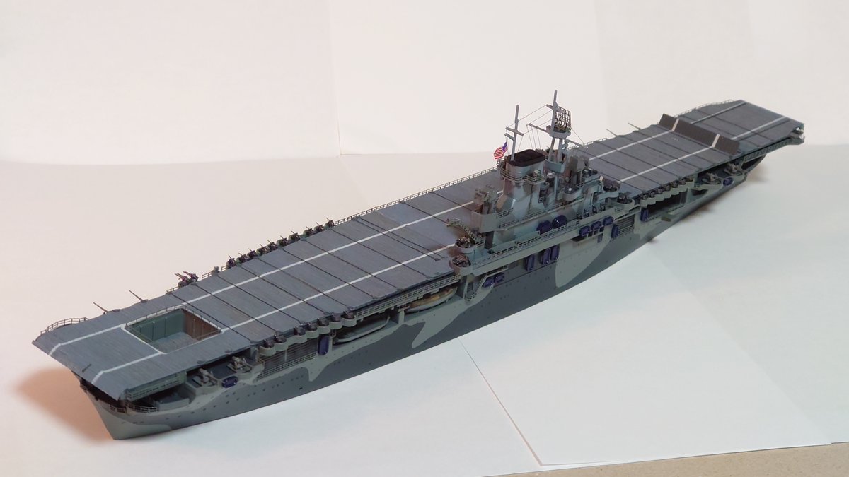 10月プラモ、アオシマのCV-7ワスプです! 原稿やりながら1ヶ月半での建造にはやはり無理があった!艦載機は間に合わずじまいです…! アオシマらしく作成に苦労するところはありませんでしたが、格納庫内を再現できればなおよかったですね…! #マンスリープラモデル #今月作ったプラモ晒そうぜ