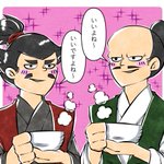 #今月描いた絵を晒そう 今月描いた、「なんじゃが」の毛利輝元と「戦国無双5」「のぶニャがの野望」の毛利輝元と「ねこねこ日本史」の毛利輝元と今月描いたんじゃないけど、おまけの「連載終了漫画家・徳永サトシ先生」の毛利輝元。