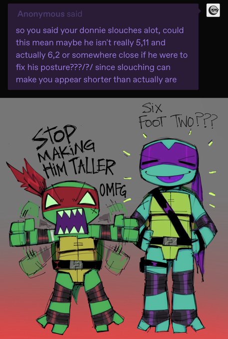 hm is anyone here as tall as donnie? or are we all raph size