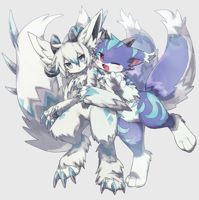 commission! 白い方は以前自分がデザインしたキャラです。また描けて嬉しいです!可愛いお友達ができたみたいで良かった🥰 リクエストありがとうございました!