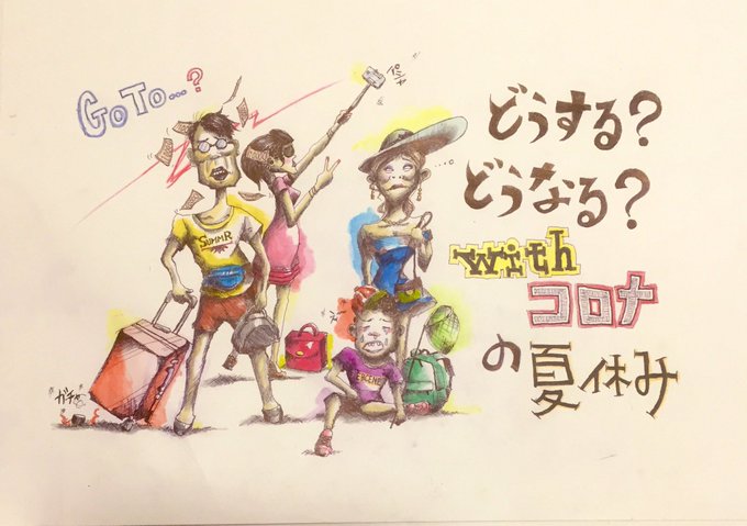 夏のバケーション楽しみにしてた方、帰省予定の方、また、観光産業に携わる方々の心中お察しします。 もう、わからん💢横文字ばっかり💢 #goto #コロナ対策 #イラスト #絵描きさんと繋がりたい #ペン画 #アナログ #RTした人全員フォロー #拡散希望︎