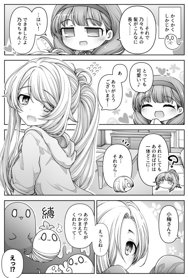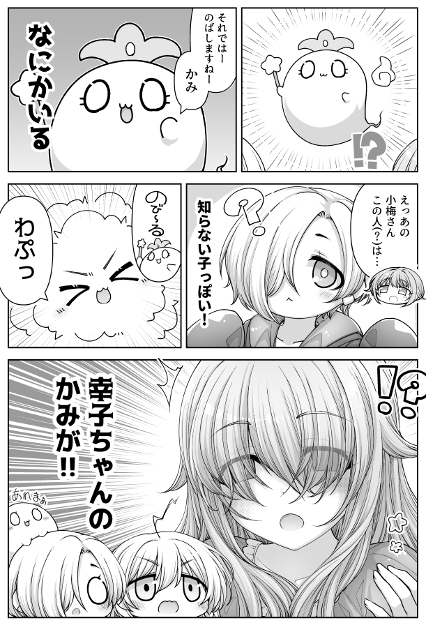 新刊『ふしぎおばけとかみゆいがたり』32P 髪をのばしてくるおばけと 小梅ちゃんたちとのすこしふしぎな漫画です(1/2) 🍈通販(melonbooks.co.jp/detail/detail.…)