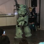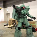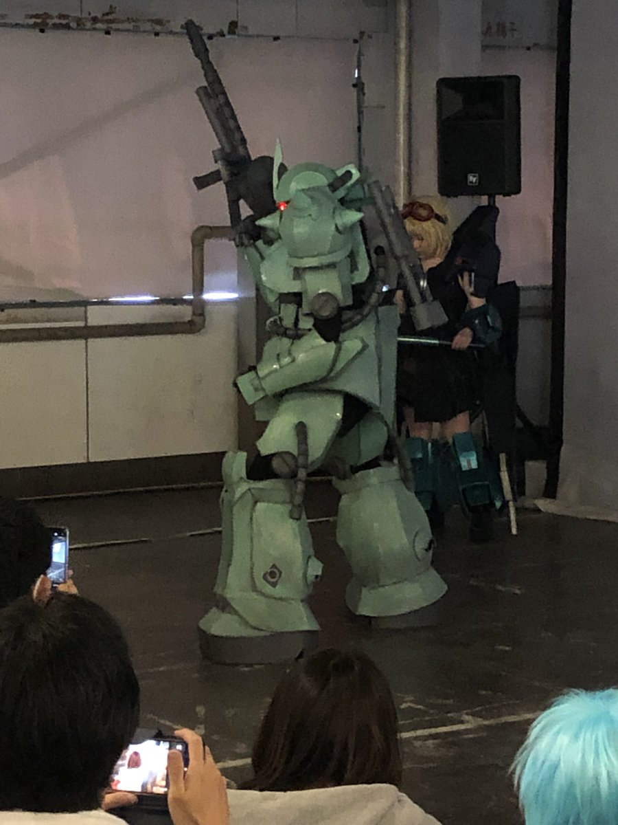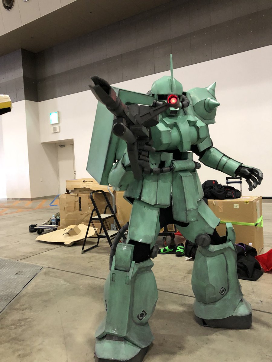 ALEXさんのザクIIF2型ノイエンビッター機! 中に入っている本人がほとんど隠れているはずなのに素早いアクションが可能な作りになっていて凄かったです! あとメイド服完全に着こなしもバッチリでした! #スーパーロボコス大展