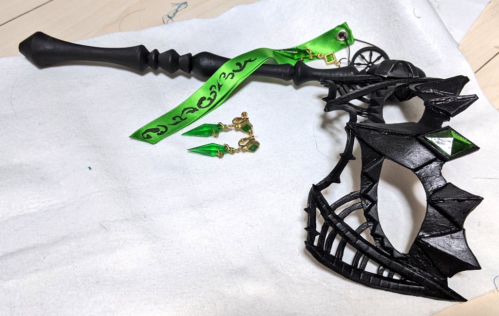 マレウスの杖&寮服完成しました! 修羅場脱出です!糸部分を光らせてみました...ピシャーン! ドラコニアチャレンジの挑戦者大募集です笑 ツノぼっち太郎なので招待状ください… 色んな人に見てもらいたいのでタグ失礼します! #twstレイヤーさんと繋がりたい #ツイステレイヤーさんと繋がりたい