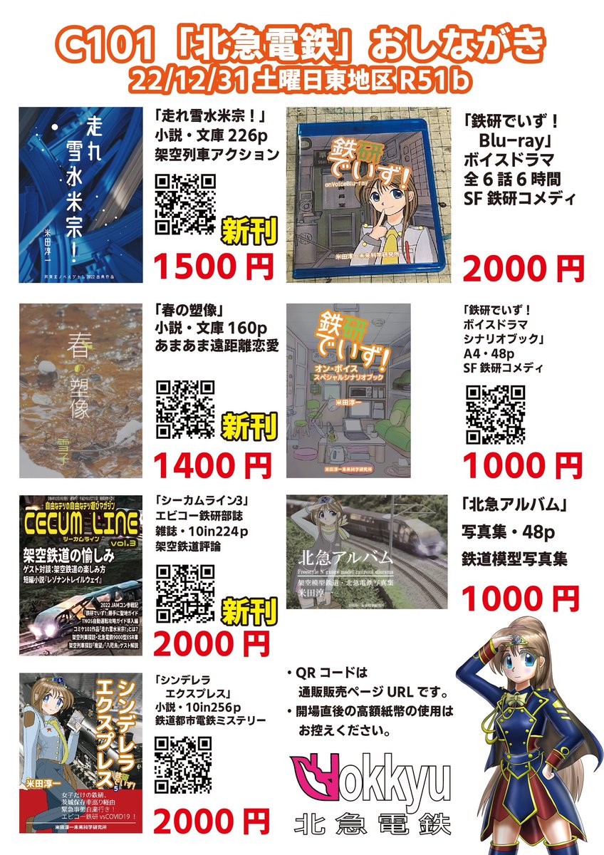 2 6 明日の #C101 東R51bに「北急電鉄」で出展します。はじめてのコミケサークル参加であります。よろしくなり。 22/12/30 19:15