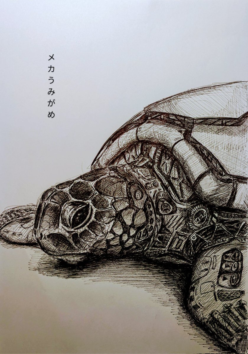 授業中のボールペンらくがき3 メカうみがめ #絵描きさんと繫がりたい