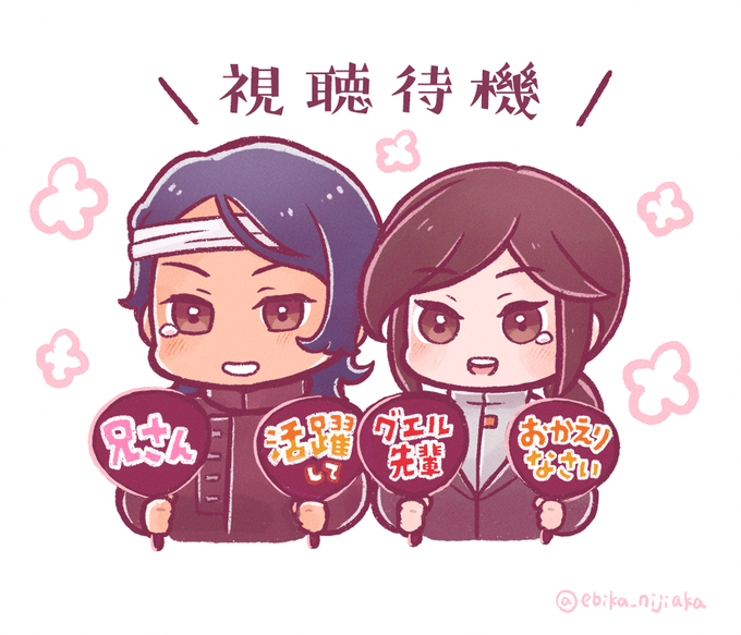 これは13話前に写経として描いてたけど間に合わなかったボブスレちゃん(グエスレ)。おそろい祈願🌸🌻