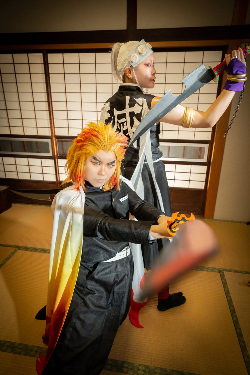 Cos*鬼滅の刃 炎i柱 煉獄i杏寿郎 音i柱 宇随i天元(@blue_daisy125) photo:ラプターさん(@Raptores4 )