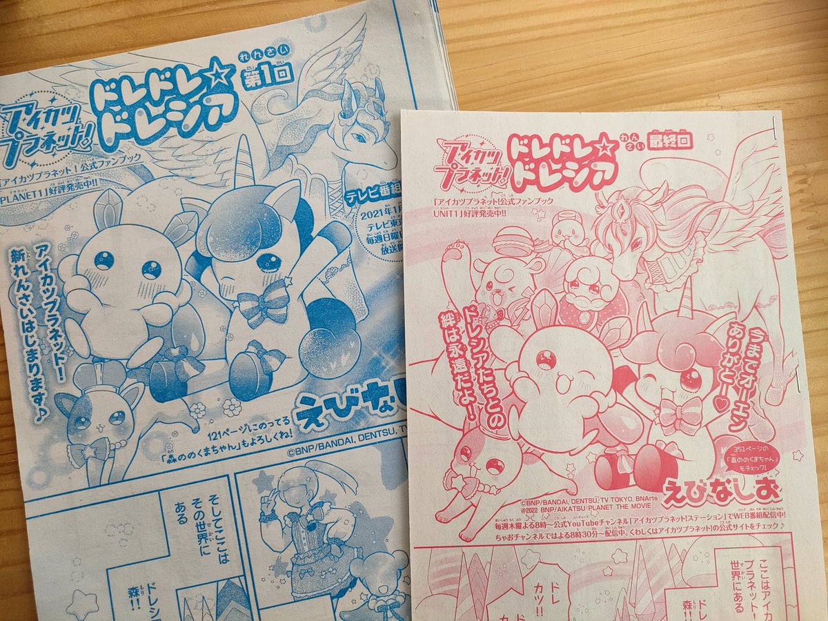 ちゃお7月号『#アイカツプラネット!ドレドレ⭐️ドレシア』は最終回です!めちゃくちゃさみしい!! とはいえ、まだも少しニコたちを描かせていただく機会がございますのでその時は何卒です! トビラ絵は1話目リメイク。ニコたちと一緒に自分も成長したように見える!ゼヒ読んでね!
