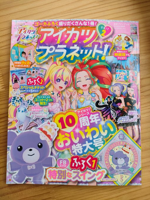 #アイカツプラネット 公式ファンブックUNIT2発売中でございまーす✨ ふろくSPチケットのスタートドレス、めちゃキャワ! まんが『ドレドレ⭐️ドレシア』も是非見てね💖 改めてアイカツ10周年おめでとうございます!!