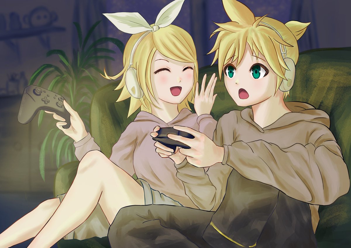 ゲームをしてるリンレンを描いた🎮 #イラスト好きな人と繋がりたい #絵描きさんと繋がりたい #鏡音リン #鏡音レン