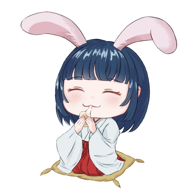 卯年なんで、うさ耳巫女が座布団の上で餅を食べる絵を描きました笑 #イラスト #卯年
