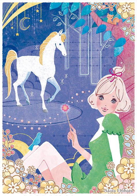 もとの絵はこちら〜。 妖精さんとお馬、夜の森。 #女の子イラスト #イラスト好きさんと繋がりたい #絵描きさんと繋がりたい #イラストレーター twitter.com/ebitin/status/…