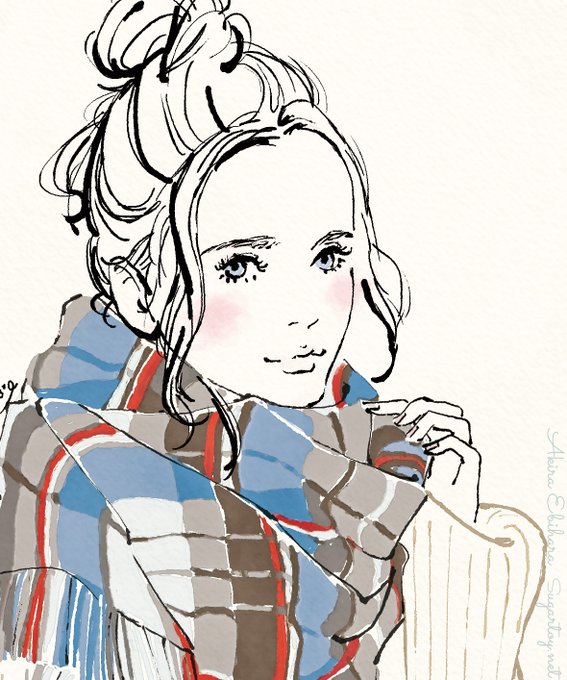 某所用に手を入れ直したんだけど、赤い口紅じゃなくしたらラフで大人っぽい人から素朴で可愛い人になった。ストールぐるぐるは可愛いよね。来年別の某所で販売するの、この子にしようかな。 #女の子イラスト #イラスト好きさんと繋がりたい #絵描きさんと繋がりたい