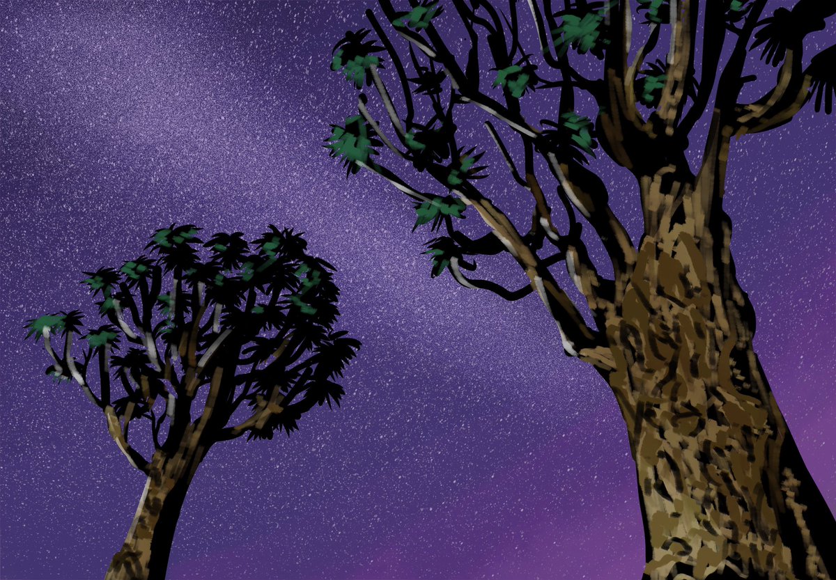 背景の練習。夜の砂漠。 ネットで見つけたやつ模写しました #練習 #イラスト