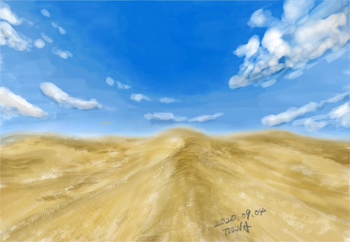 0 6 風景描く練習。 今日は砂漠と空。 #ほぼ毎日 #イラスト 22/09/04 01:52