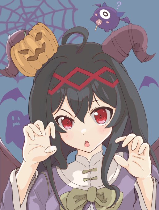 ハロウィン当日におメアさんがカラーチェンジするなんて予想できなかった、とりあえずハロウィンカラーVerも用意しました。 #メアとの契約書