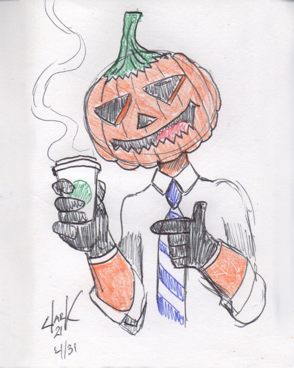 Here’s my daily drawing for #Inktober, #Spooktober, and #Melloween. It’s knot + mist + pumpkins. Do you think he’s drinking pumpkin spice? And would that weird you out if he was?