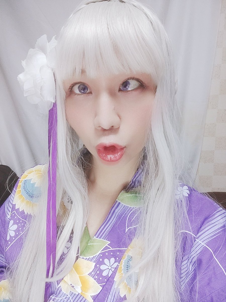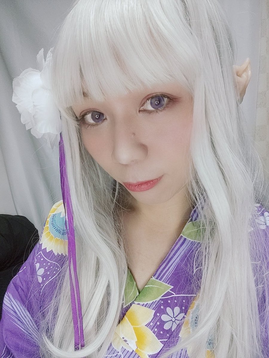 久々のコスプレ。。 と言って良いのかw メイクすら久々なような。。 夏も終わりなので、最後の浴衣! #エミリア #女装