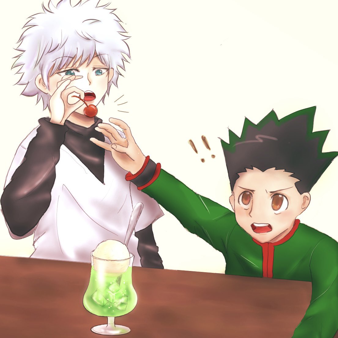 #イラスト初心者の100日チャレンジ 16日目!キルゴン🛹🎣 こないだのメロンソーダの続き描いてみた(2枚目)❤️ #hxh #hxhfanart #100日チャレンジ