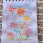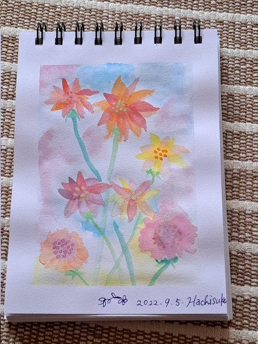 1 7 #水彩画 #はちすけ画伯 #絵 台風の前の静けさ かな? ほんわか お空に 揺らめく花たち 良い景色だな🌼 22/09/05 17:13
