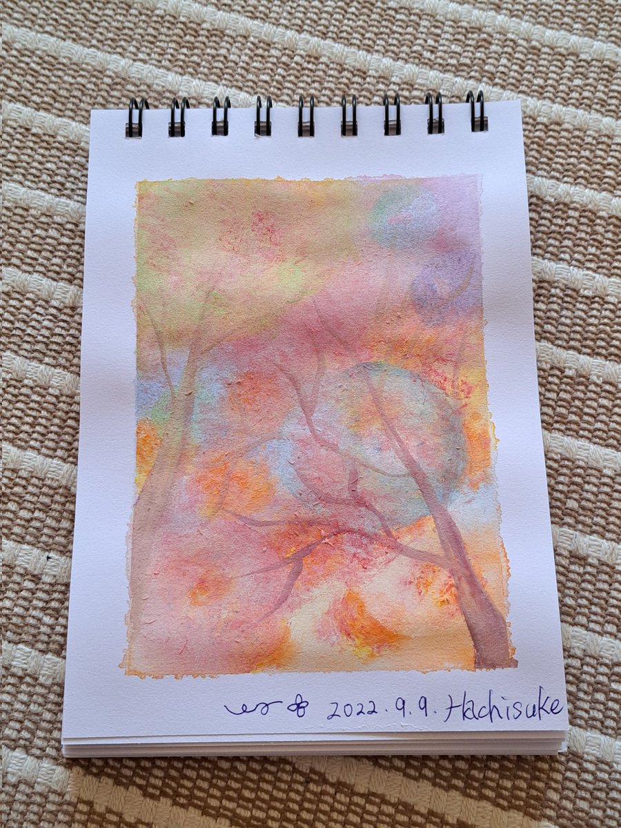 0 6 #はちすけ画伯 #水彩画 #絵がすき 本日のいちまい 木漏れ日が ほんわかほわほわ ふりそそぐ やさしい世界 22/09/09 16:51