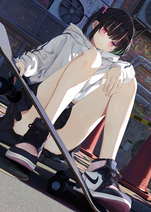 スケボー始めた生足ちゃん