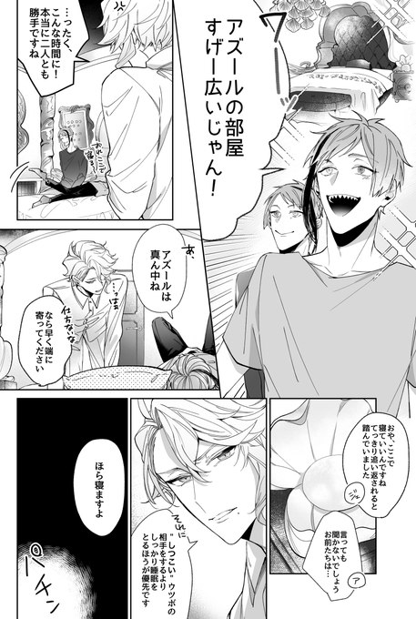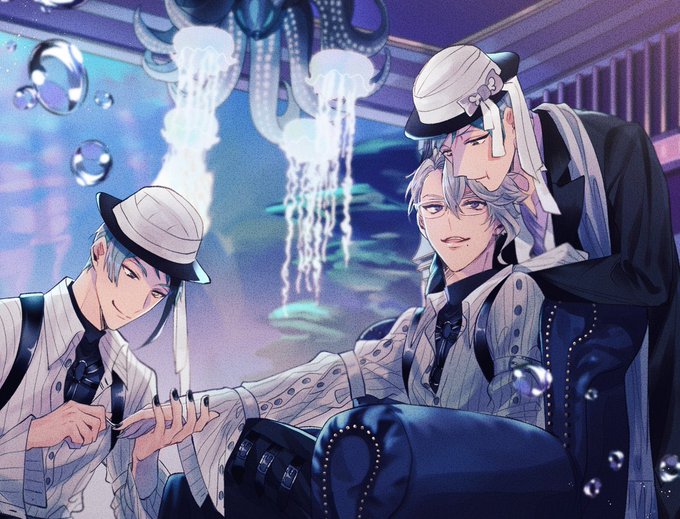 🦈「アズールこっちこっち~!」 🐙「まったくどこまで行くんです?」 🐬「ふふっもう少しです、…いきますよフロイド!」 🦈「オッケージェイド!」 🐬🦈「せーのっ!」 #アズール・アーシェングロット誕生祭2021 #アズール・アーシェングロット生誕祭2021