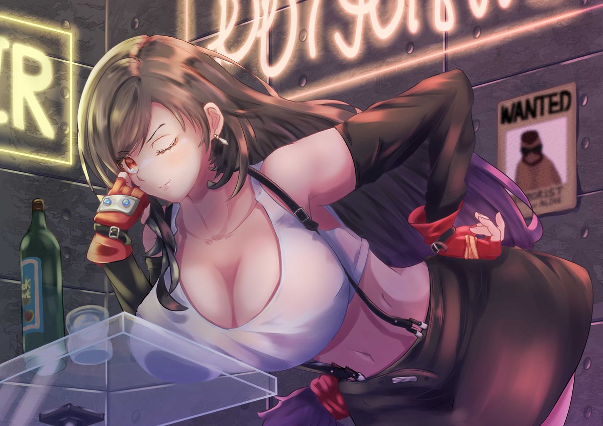 FF7のティファを描いてみました。 ミッドガルのスラムにあるバーみたいなイメージ🤔 #FF7 #ティファ #Tifa #イラスト #イラスト練習中