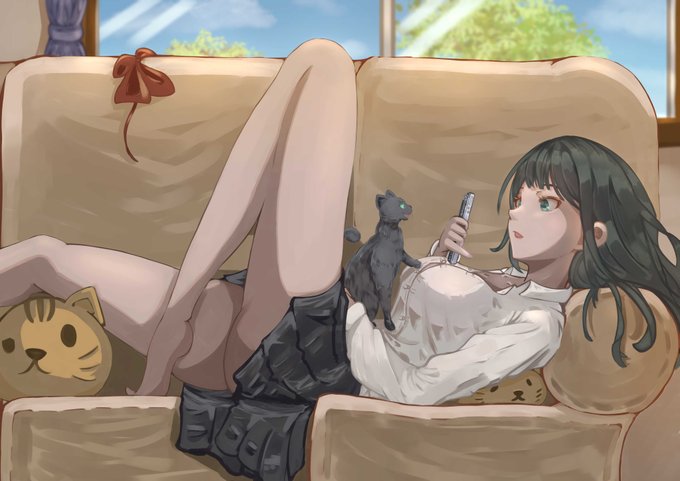 11 95 帰宅するなりスマホをいじる女の子と遊んでほしい猫🐱 今回は厚塗りの練習。たのしい✨ #厚塗り #猫 #イラスト #イラスト練習中 22/11/23 18:00