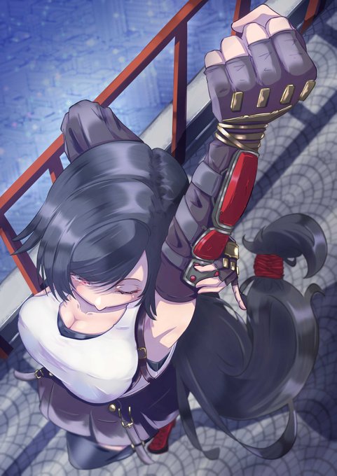俯瞰は苦手ですが、2022年最後の挑戦🔥 まだ力不足かなと思いつつ、憧れのダイナミックな構図を試してみました。 #FF7 #ティファ #Tifa #イラスト #イラスト練習中