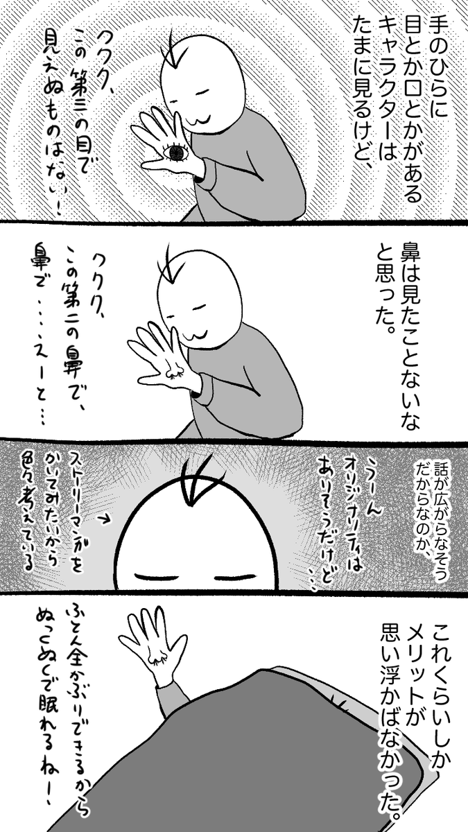 手のひらに目とか口とかあるキャラクターについて #4コマ漫画 #コミックエッセイ #エッセイ漫画