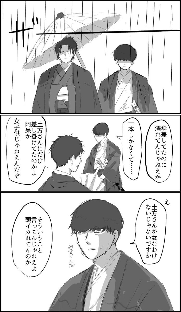 5 11 久しぶりに読んだのでネタを借りて描かせて頂いたやつ描き直した ローライフの土方さんと山崎(+永倉さん) 23/07/30 13:49