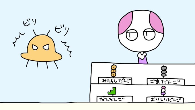#illustration #みんなで楽しむTwitter展覧会 #漫画が読めるハッシュタグ #4コマ漫画 #イラスト好きさんと繋がりたい #絵描きさんと繋がりたい #絵師さんと繋がりたい あなたの街のだんごやさん 第21話 もはや大喜利