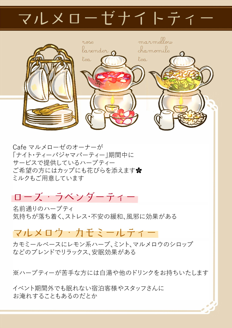 【PFSOZ】やさしい夜のひとときを #【Cafeマルメローゼ】 #pixivファンタジアSOZ #【マルメロティ・パジャパ】 #【Cafeマルメローゼ:ウラメニュー】 pixiv.net/artworks/10511…