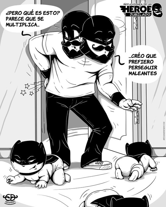 Finalmente ha nacido la criatura, peeero... ... tenemos un problema. ¿Y esa mascara de batman? ¿Quién lo explica he? #reflexionesdeunheroejubilado #Maracaibo #drawdaily #ink #artvsartist #illustration #pelaeldiente #humor #29jun #artwork #comicbookart