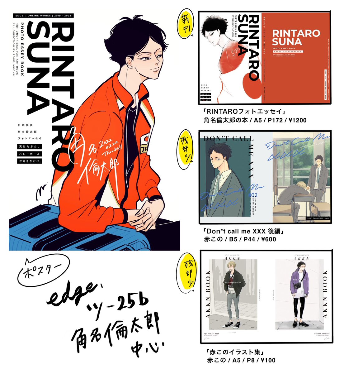 【お品書き】 明日のお品書きまとめました〜! 倫太郎の本と、赤このの本もちょっと持っていきます!余ってるポストカードとかもあるのでよかったら遊びに来てください😊💕 【新刊サンプル】 pixiv.net/artworks/96374… 角名本のサンプルpixivにまとめてます☝️ よろしくお願いします!🙌✨
