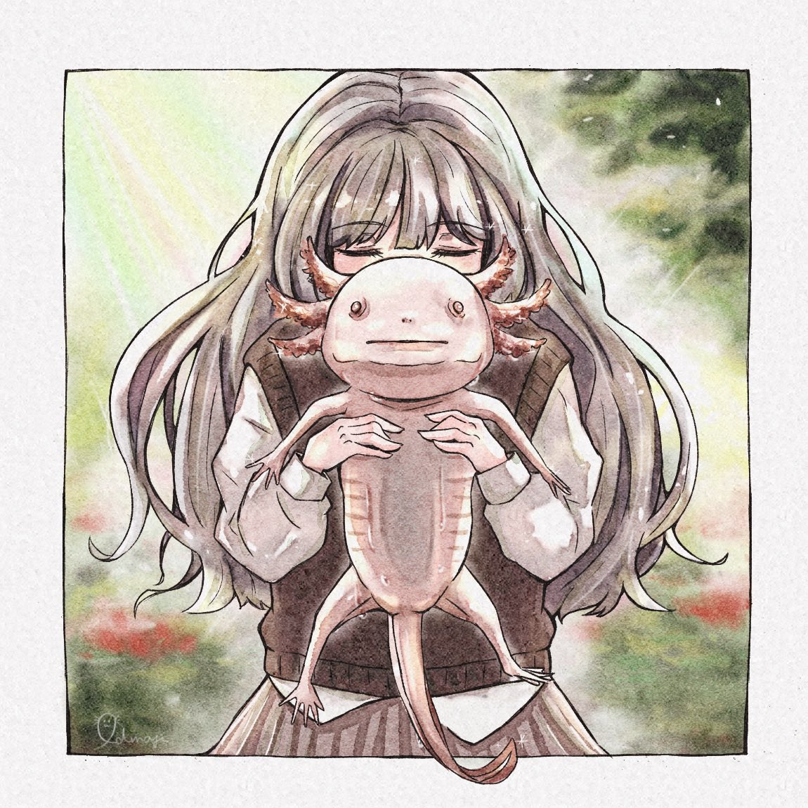 企画参加させていただきます✨ ウーパールーパーのイラストを描くのが大好きです🐟❤️最近は人物の練習も頑張ってます🙆🏻♀️質感のある絵がお気に入りです🌸 #フォロワー3000以下の一次創作作家発掘フェス #イラスト好きな人と繋がりたい