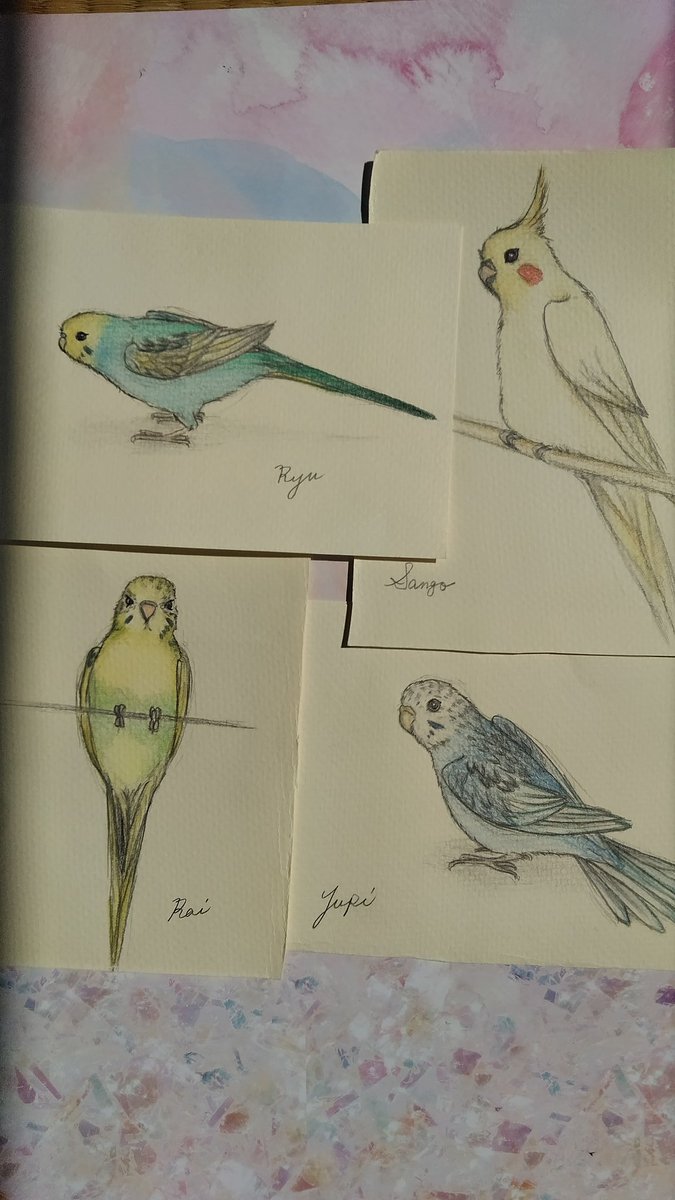 1 9 以前、プラバンとレジンのキーホルダーにしたもとの絵に、色付けしてみた❗ #インコイラスト #色鉛筆 20/04/29 15:56